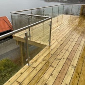 Glassrekkverk kan velges i tykkelse 6, 8, 10 og 12mm., i herdet eller laminert glass. Rekkverket kan velges med rustfritt stål eller tre.